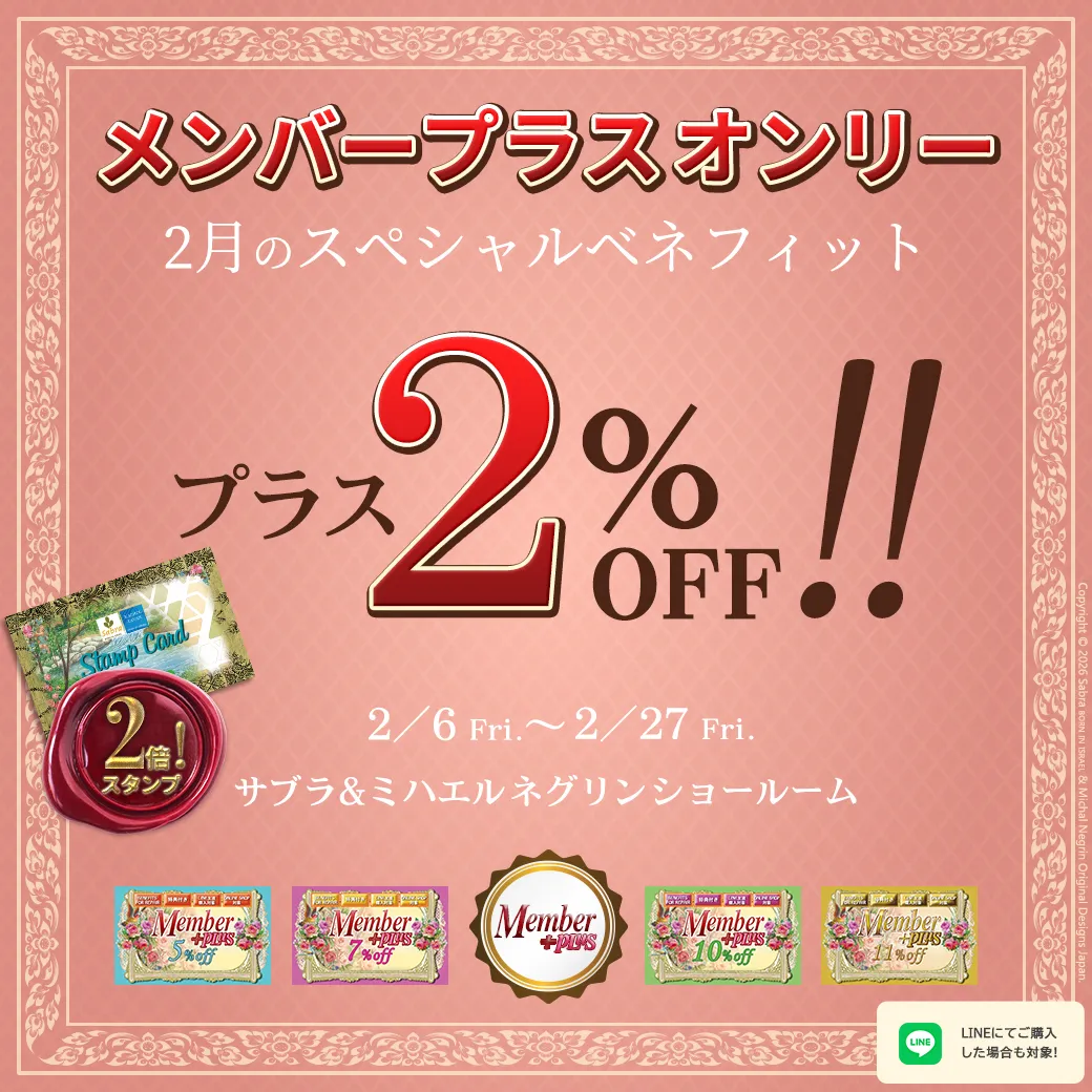 ショールームでのお買い物で、ご自身のメンバー割引に加え更に2%オフいたします。